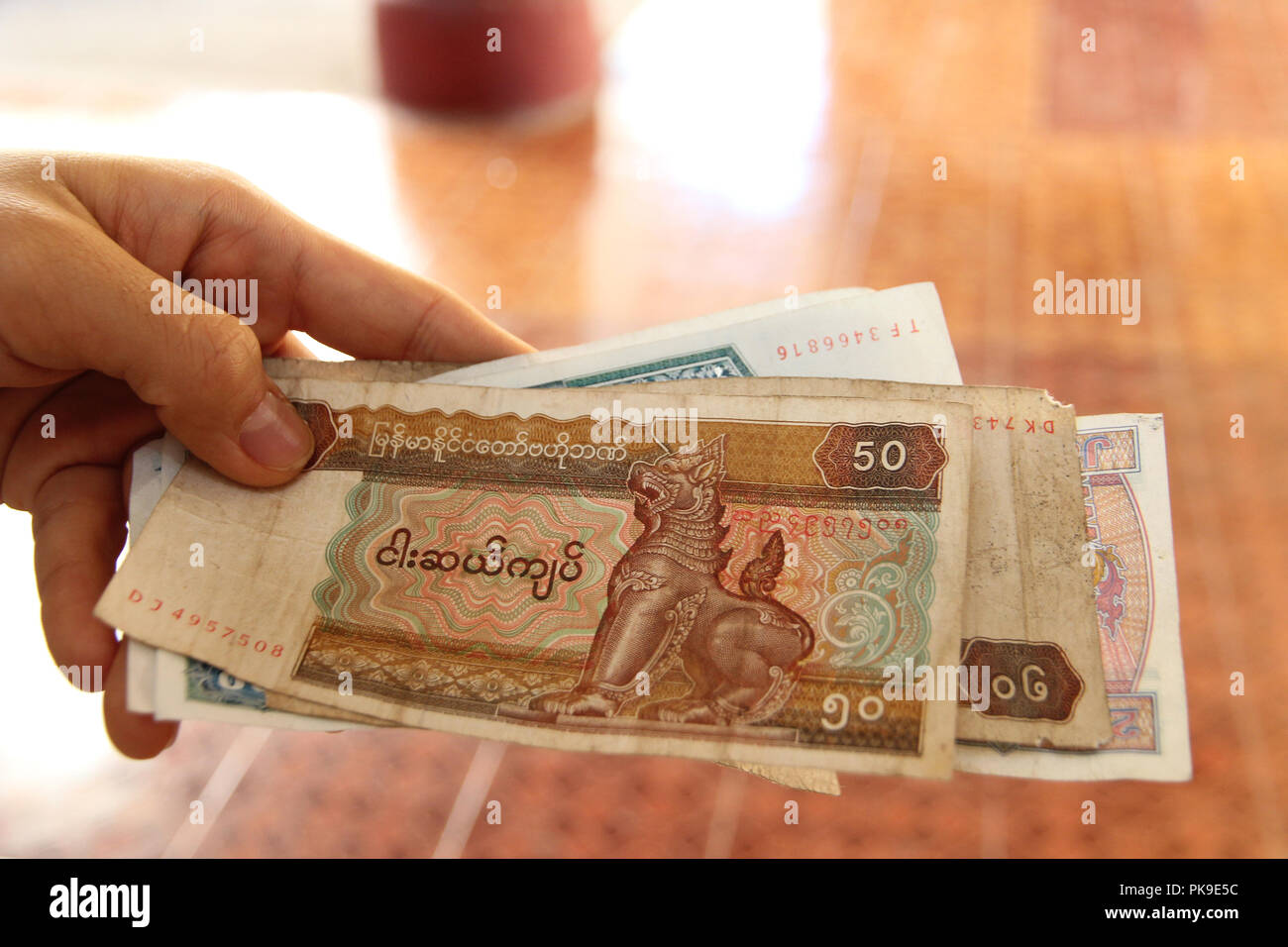 Myanmar Banknotes Mm Mmr Kyat Were Unfolded In Hand Stock Photo Alamy