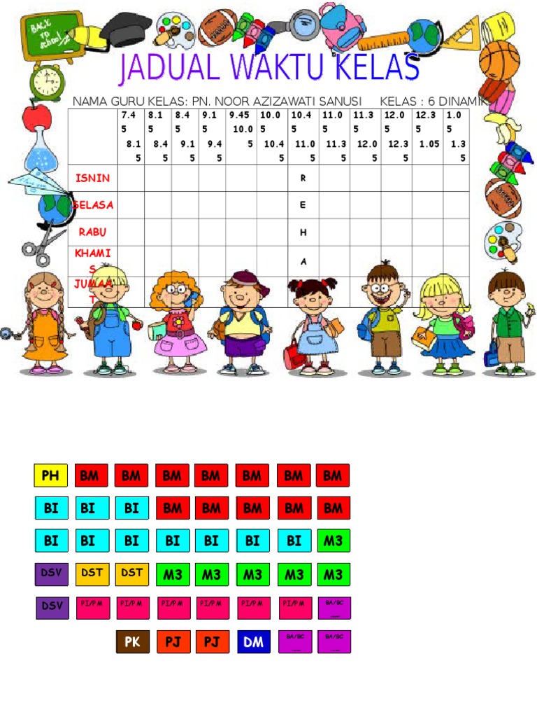 Template jadual waktu kelas dan guru xd waktu kosong template jadual waktu kelas boleh edit jadual waktu solat sarawak menampilkan waktu. Jadual ini direka letak dalam saiz a4 yang boleh dicetak besarkan sehingga 12 kali saiz a4 tanpa mencacatkan kualiti kerana penggunaan resolusi. JADUAL WAKTU KELAS PEMULIHAN KHAS 2019 SK BAKUKU Study Resources.